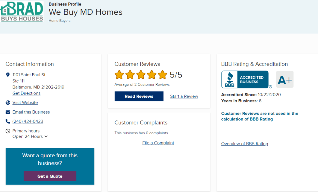 In any of those situations, you want to deal with a home buyer who has experience in those areas. You won’t find that information on a sign at an intersection. It’s 2022, and having the ability to research businesses is your path to making the right decision when it’s time for you to sell your Maryland house.